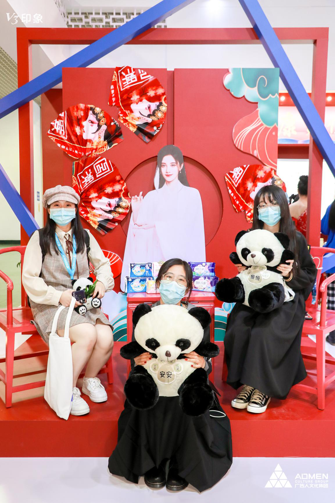 星空娱乐集团展位的正红布景极具特色,吸引了众多国风爱好者前来打卡,不少汉服小仙女都被熊猫玩偶萌翻了,纷纷合影留念。